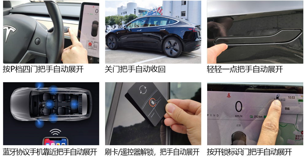 1. )車主攜帶藍牙連接汽車的手機靠近車門,把手自動展開。
