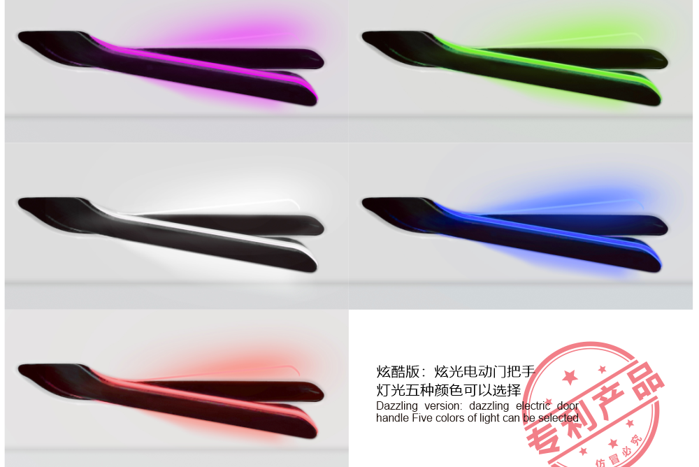 炫酷的門把手更有紫、綠、白、藍、紅五種燈光顏色可供廣大車主選擇改裝。
